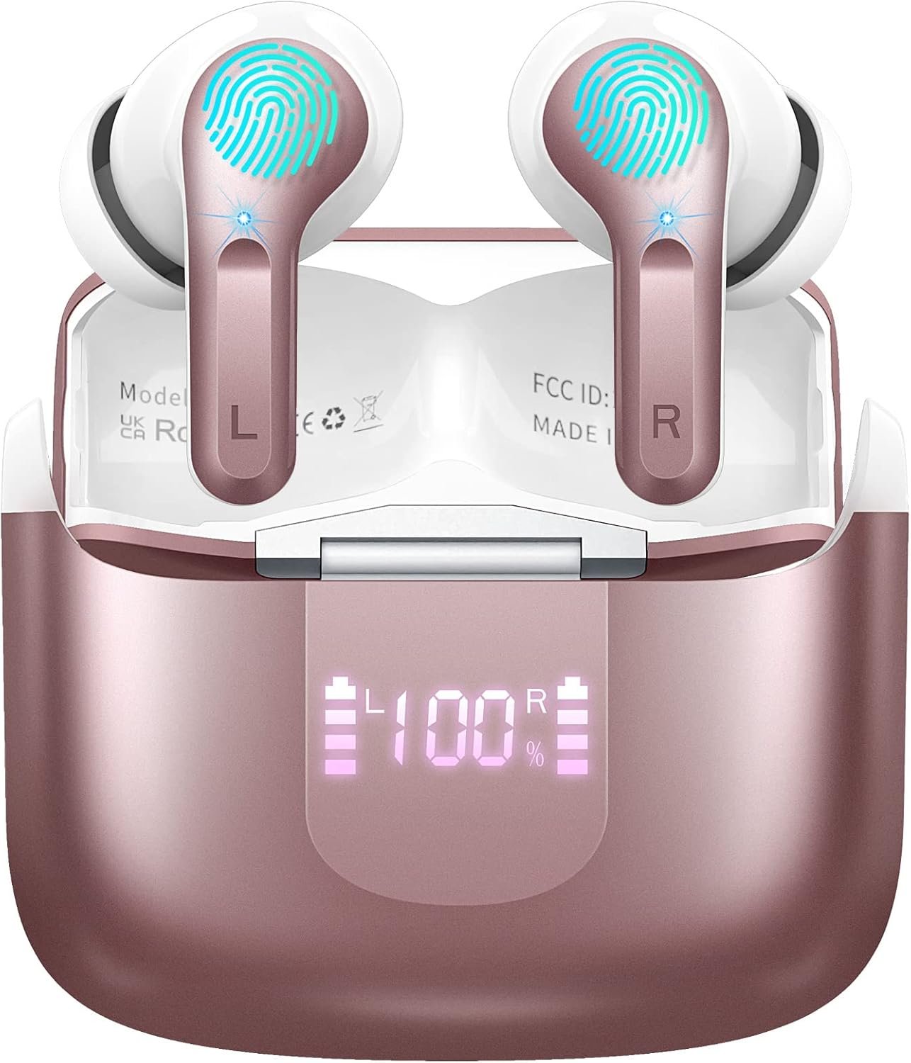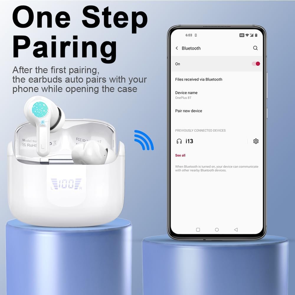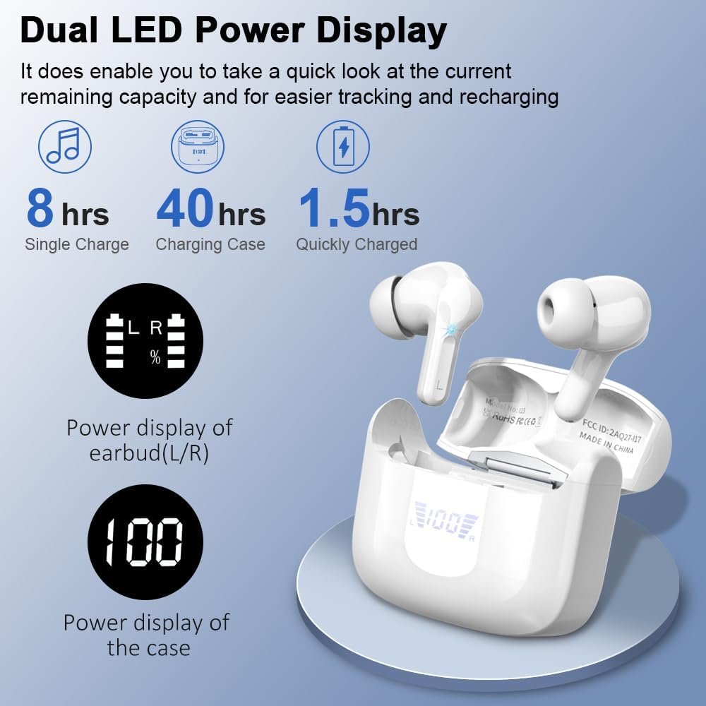 Bluetooth Wireless Earbud, Bluetooth Headphones 5.3 Stereo Bass Earphones 2023 Noise Cancelling Ear Buds 40H Dual Mic Call, Bluetooth Earbud in-Ear USB-C LED Display IP7 Waterproof Sport Headset for Android iOS