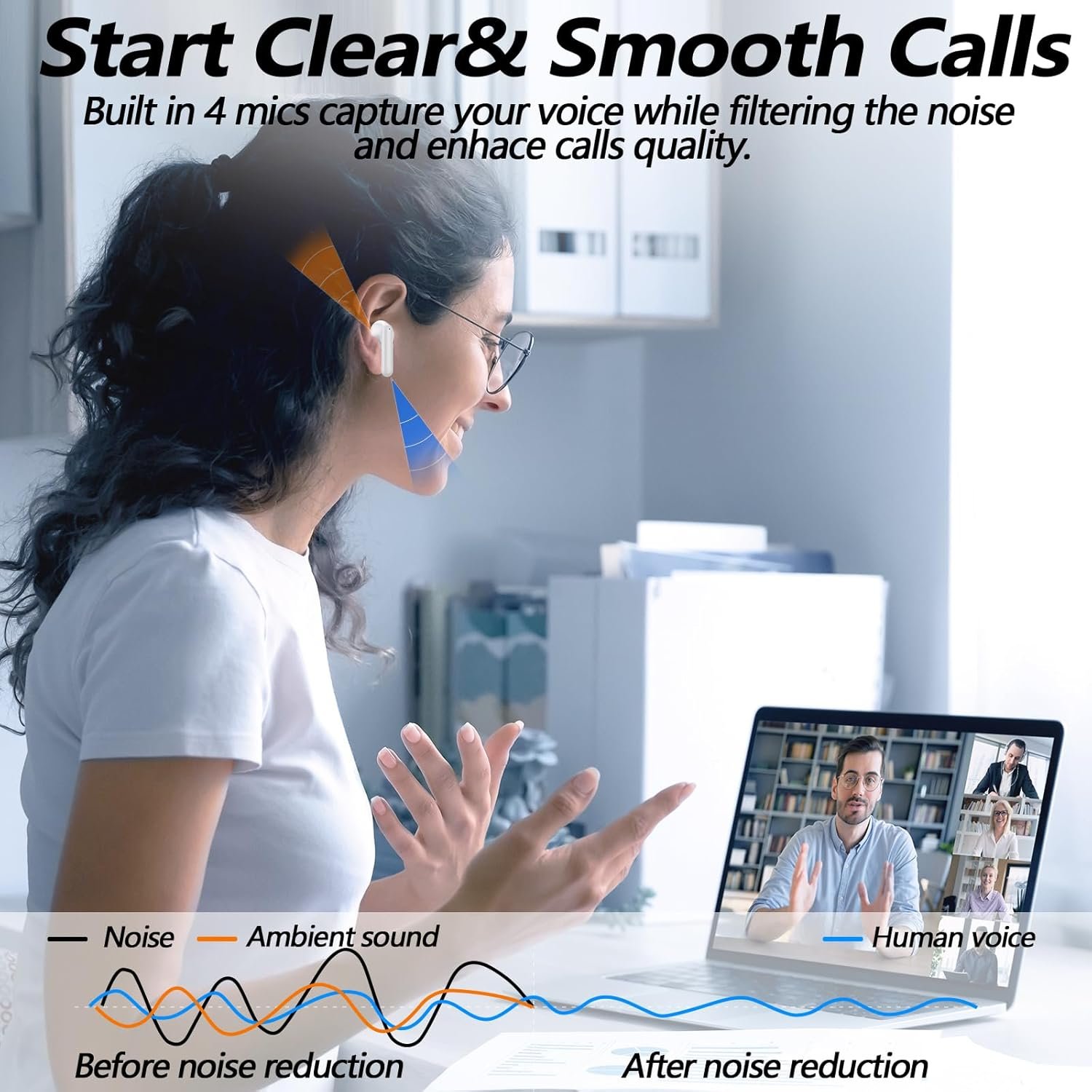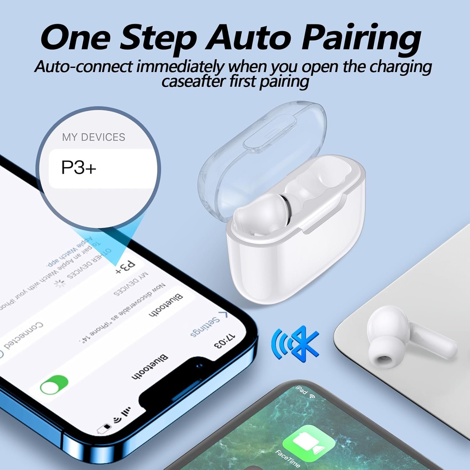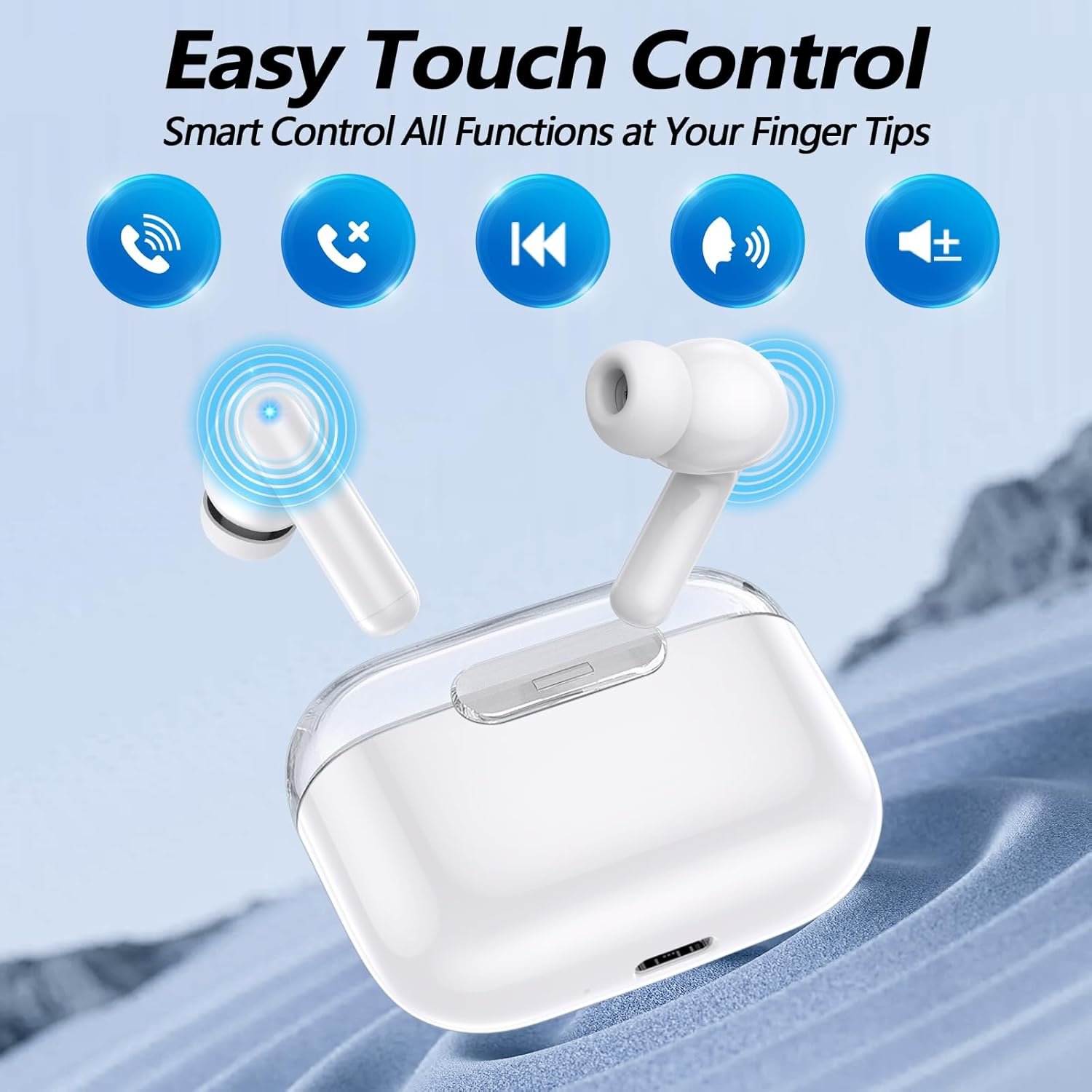 Bluetooth Wireless Ear Buds, Earbuds Bluetooth 5.3 Headphones, HiFi Stereo Sound Waterproof in-Ear Earphones with Noise Cancelling Mic for iPhone/Samsung/Android Sports Workout-White