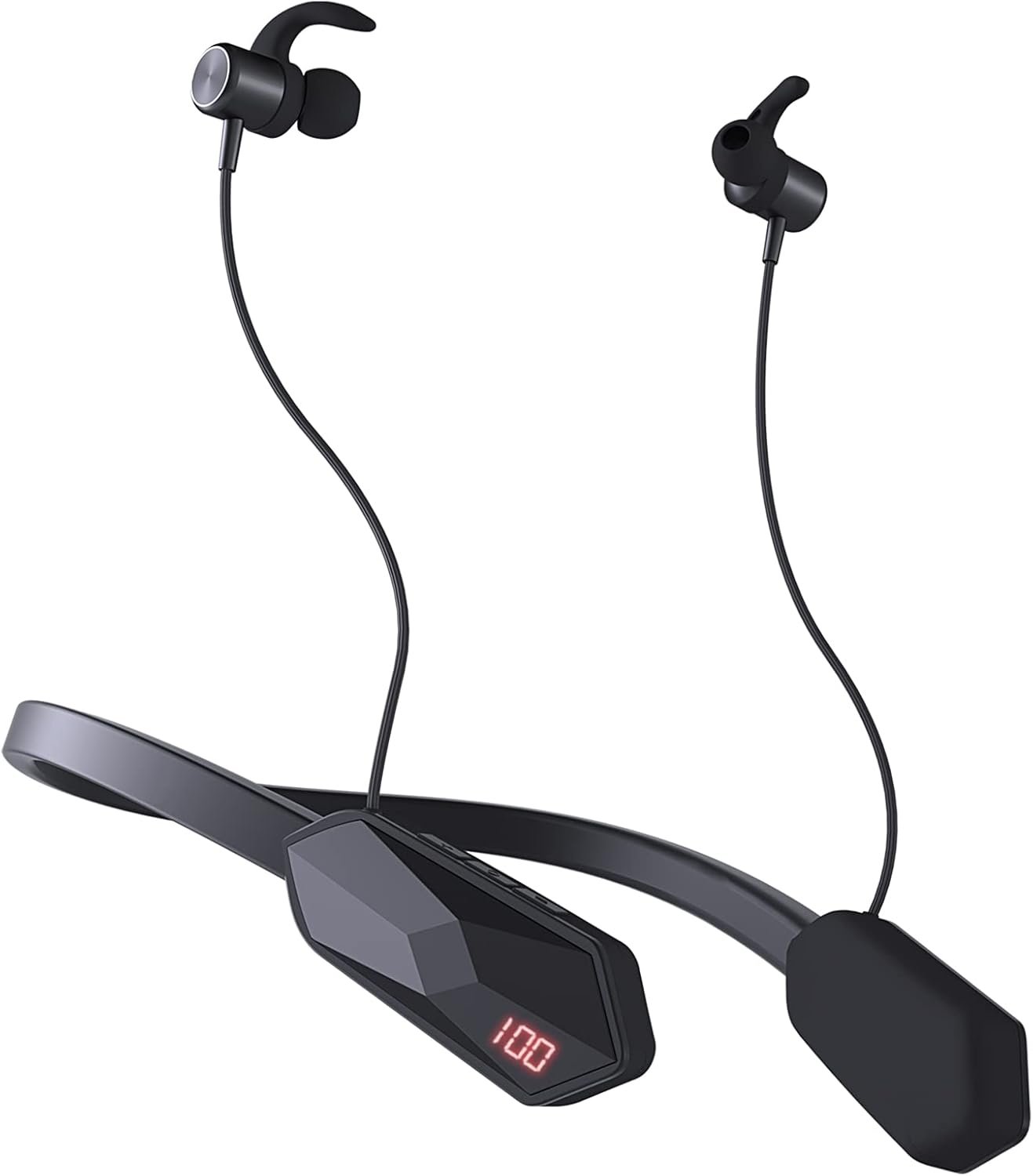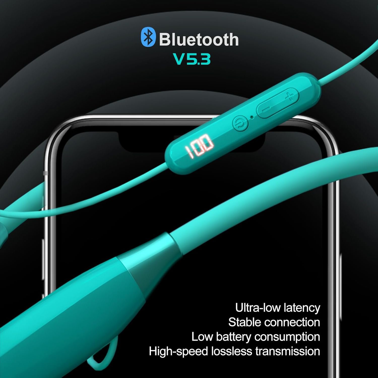 Bluetooth 200H Playback Time Neckband Bluetooth Headphones, Bluetooth 5.3 in Ear Wireless Earphones with Digital Display, Monitoring Mode for Singing, 7 EQ Modes, Support TF Card, USB-C Fast Charging