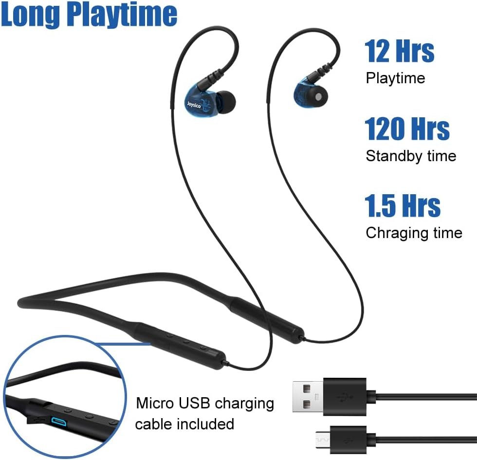 Bluetooth Wireless Headphones 16H Playtime Earbuds with Mic Stereo in-Ear Earphones, IPX7 Waterproof Sports Sound Isolation Headsets for Running, Gym, Workout