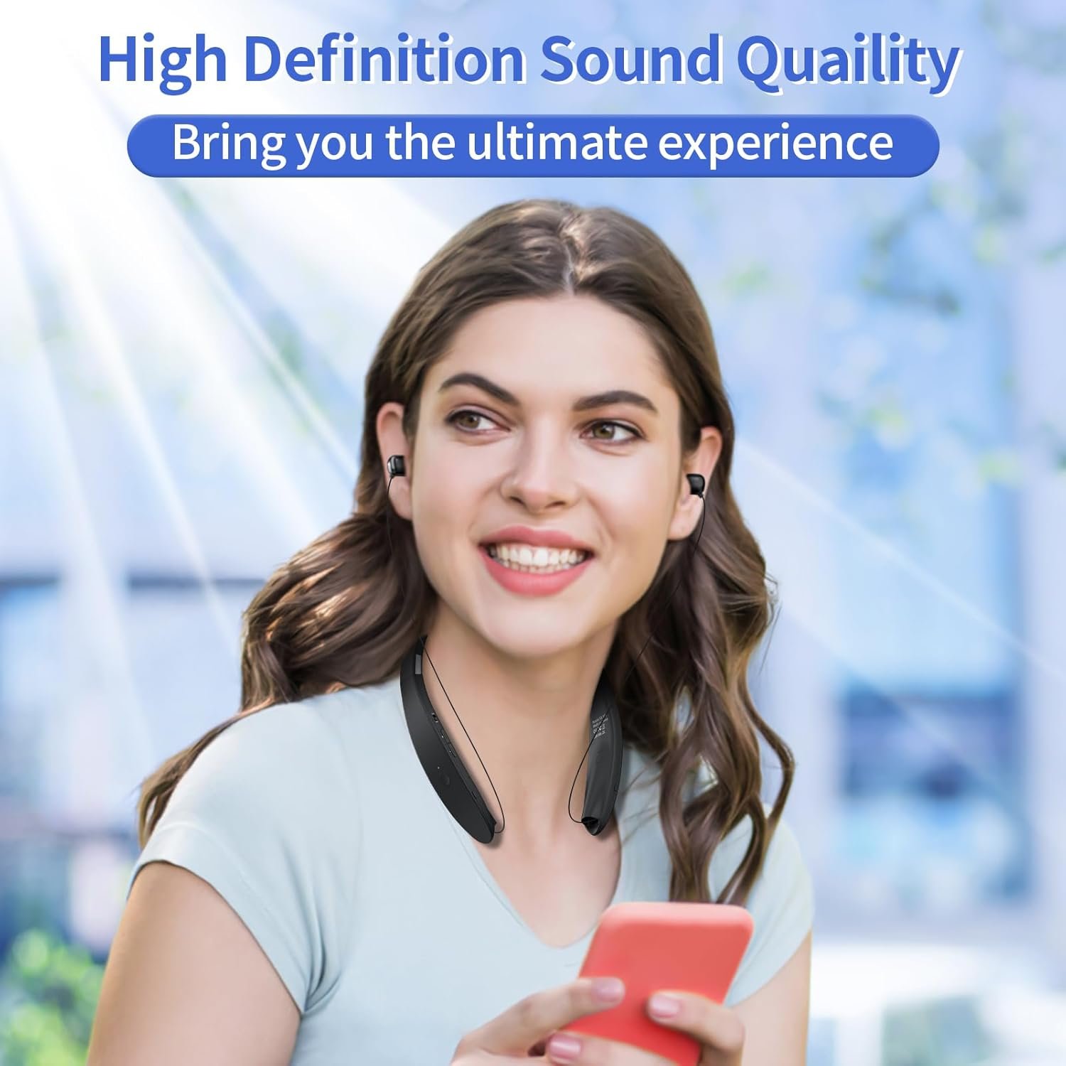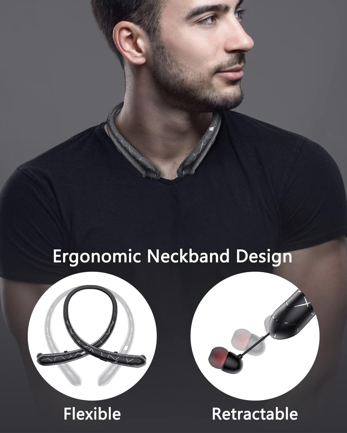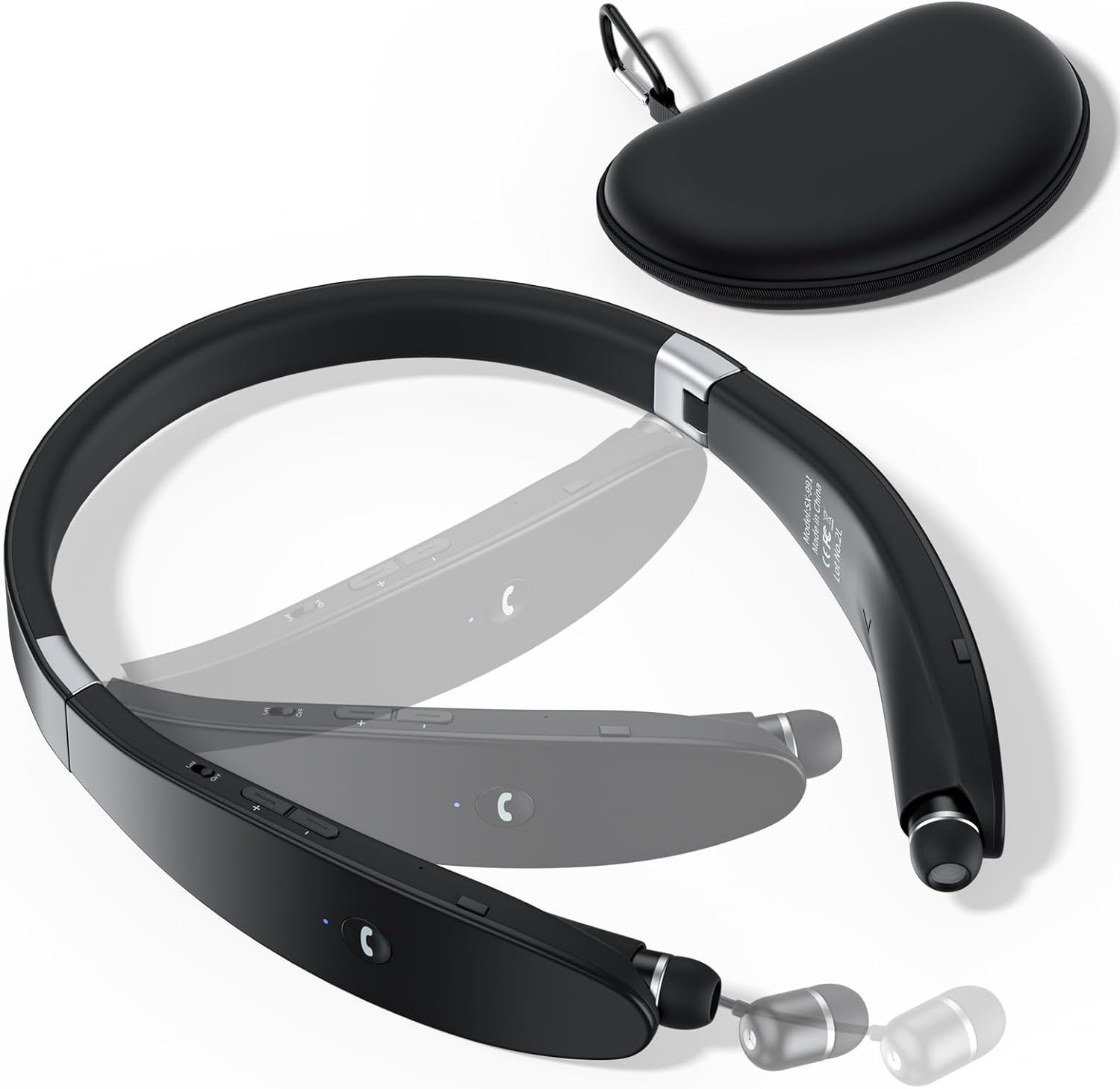 Bluetooth Headphones, Neckband Wireless Headset Bluetooth with Retractable Earbuds & Carrying Case, Foldable Noise Cancelling Earphones Workout with Mic for Workout, Lightweight & Sweatproof