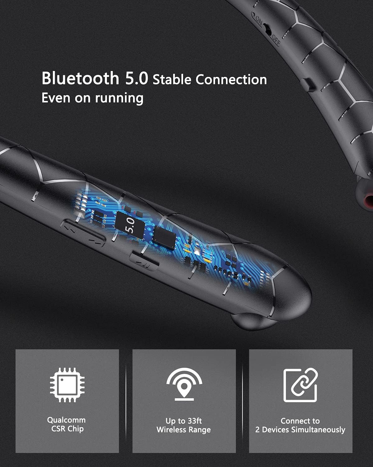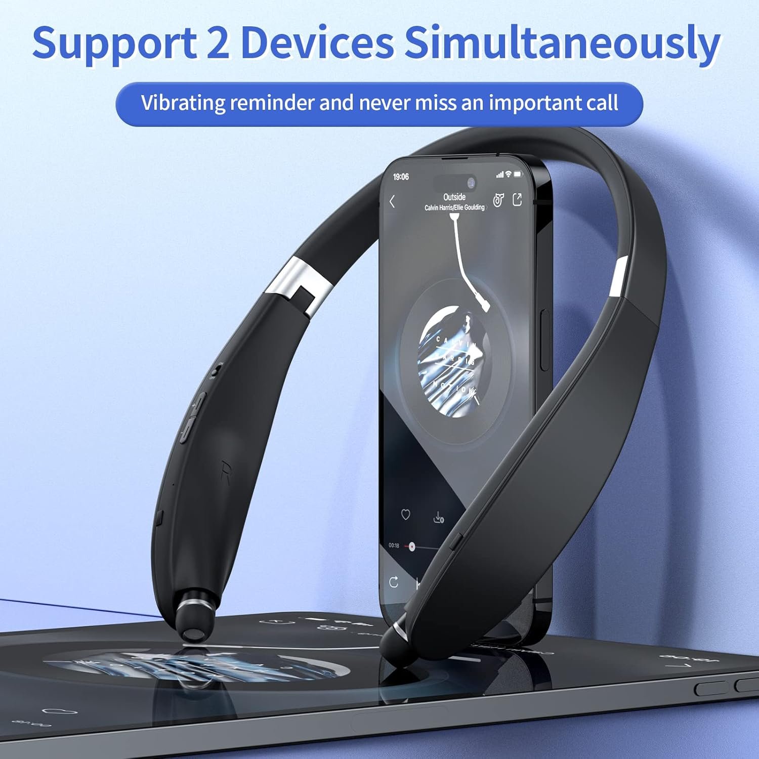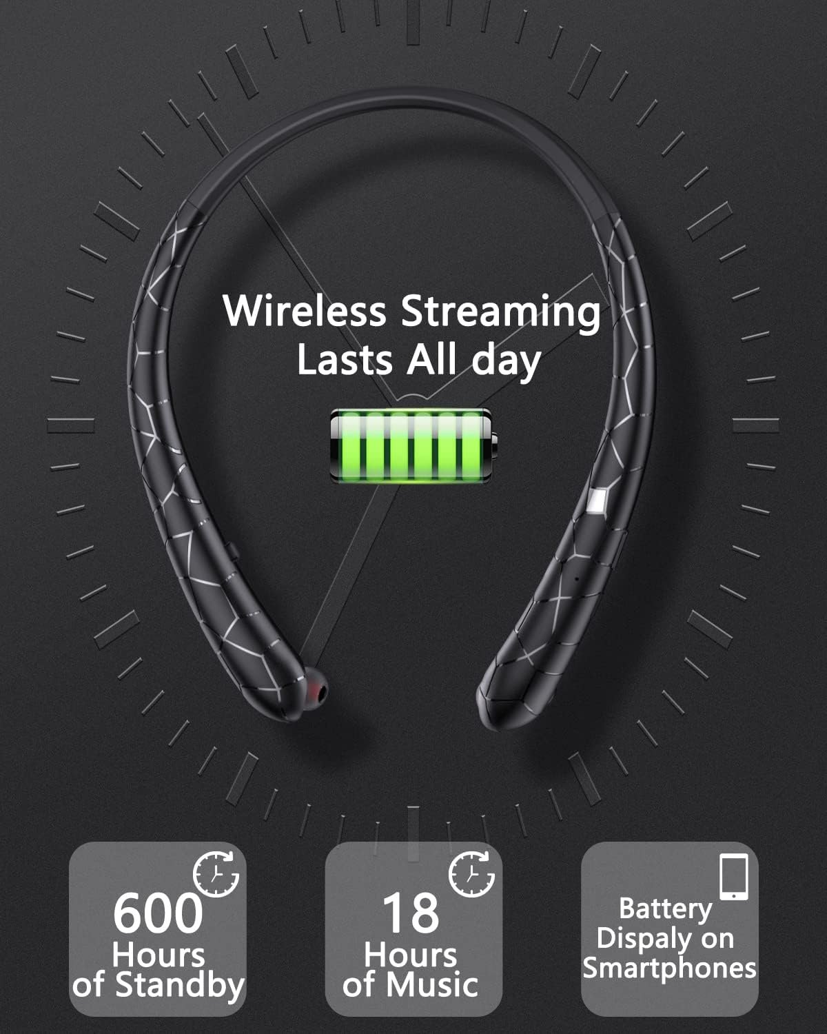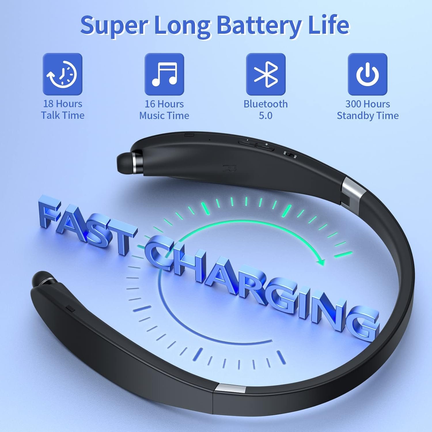 Bluetooth Headphones, Neckband Wireless Headset Bluetooth with Retractable Earbuds & Carrying Case, Foldable Noise Cancelling Earphones Workout with Mic for Workout, Lightweight & Sweatproof