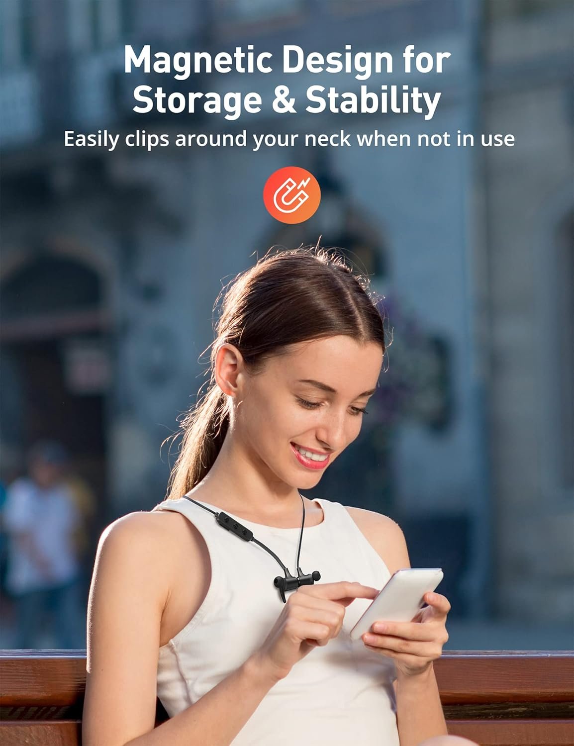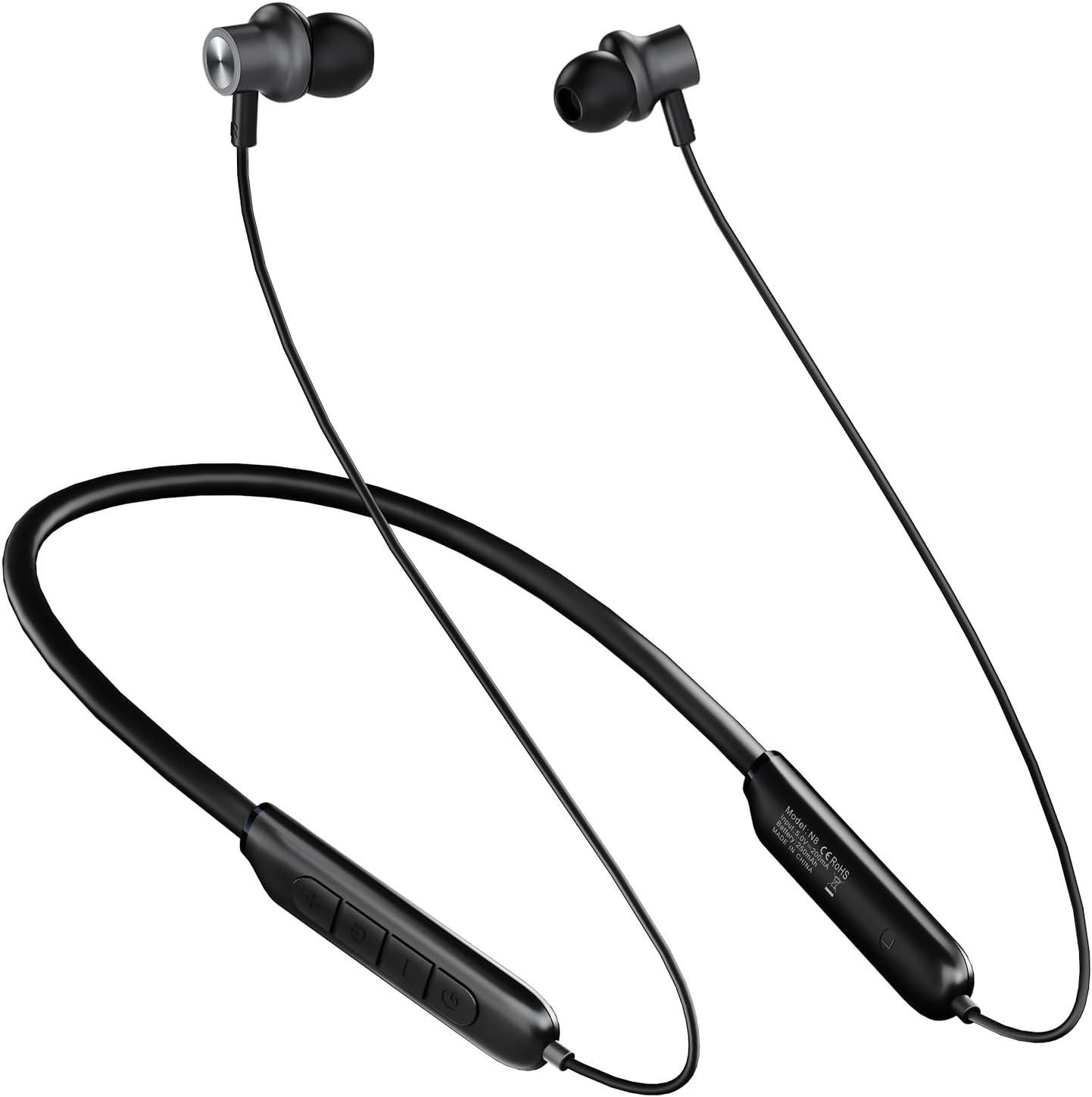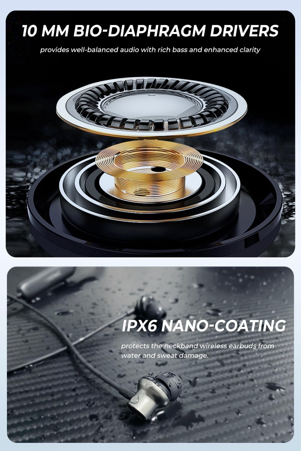 BluetoothBluetooth Headphones – N8 Wireless Earbuds with Magnetic Neckband | 40Hrs Playtime, IPX6 Sweatproof, Deep Bass Headset for Phone Calls, Music, and Sports