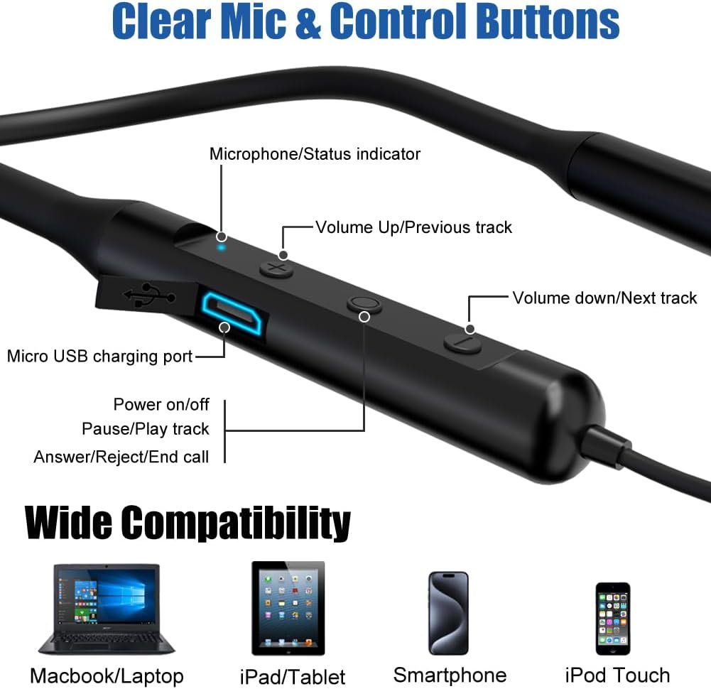 BluetoothNeck headphones wireless bluetooth,V5.2 with microphone neckband bluetooth headphones,35 hours of playtime in-ear bluetooth neckband earbuds no power button IPX7 sweat-resistant deep bass (Y6H)