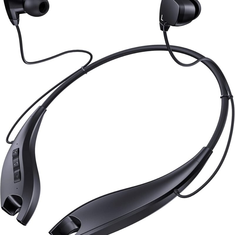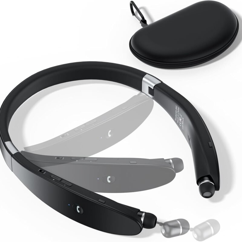 Bluetooth Headphones, Neckband Wireless Headset Bluetooth with Retractable Earbuds & Carrying Case, Foldable Noise Cancelling Earphones Workout with Mic for Workout, Lightweight & Sweatproof