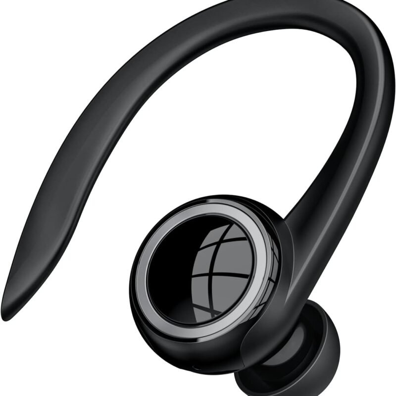Bluetooth 5.2 Headset, Single Ear Earpiece Earphone with Mic, Hook, Noise Cancelling Headset for Business, Trucker, Driver, Wireless Bone Conduction Headphone with Ear Caps (S/M/L) for iPhone Android