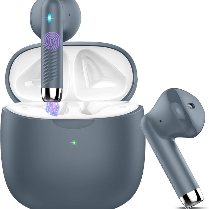 Bluetooth Wireless Earbuds, Bluetooth 5.3 Headphones in Ear with Noise Cancelling Mic, Bluetooth Earbuds Stereo Bass, IP7 Waterproof Sports Earphones, 32H Playtime USB C Charging Ear Buds Gray for Android iOS
