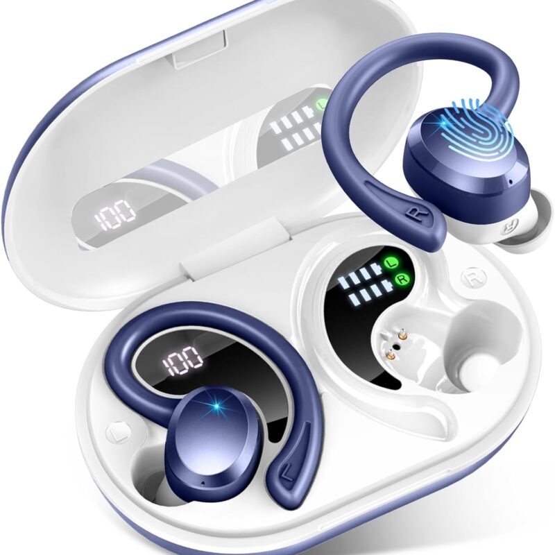 Bluetooth Wireless Earbuds, Bluetooth 5.3 Headphones with Noise Cancelling Mic, Bass Stereo Bluetooth Earphones 50Hrs with LED Display, IP7 Waterproof Earbuds with Earhooks, Ear Buds for Sports/Workout/Running