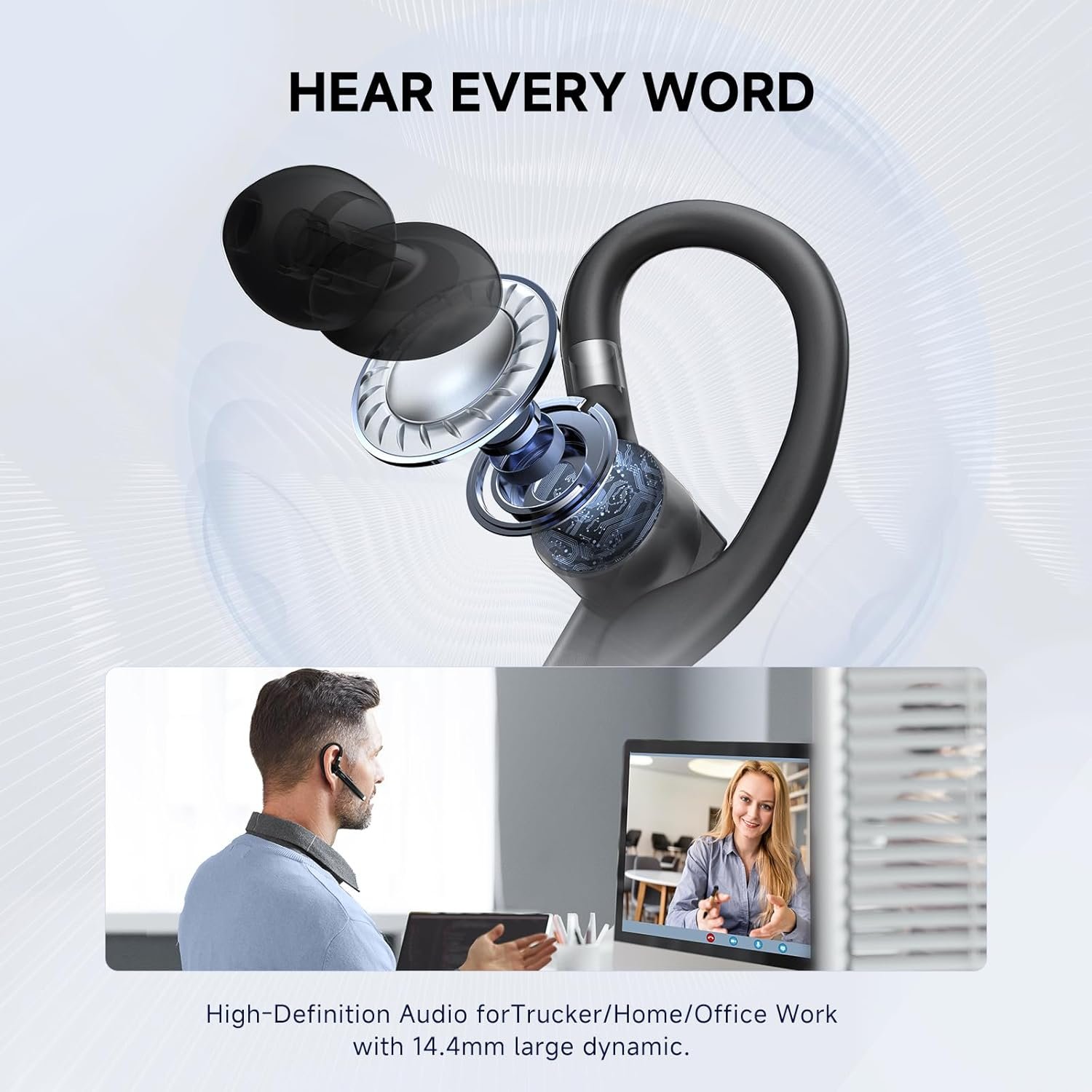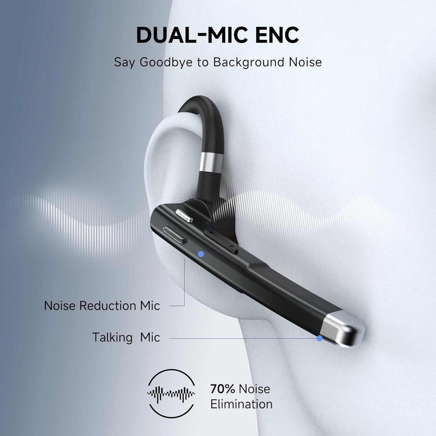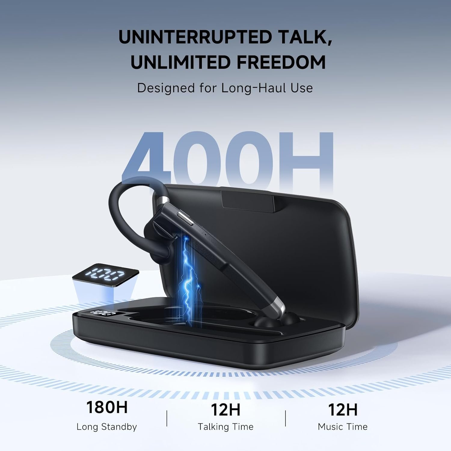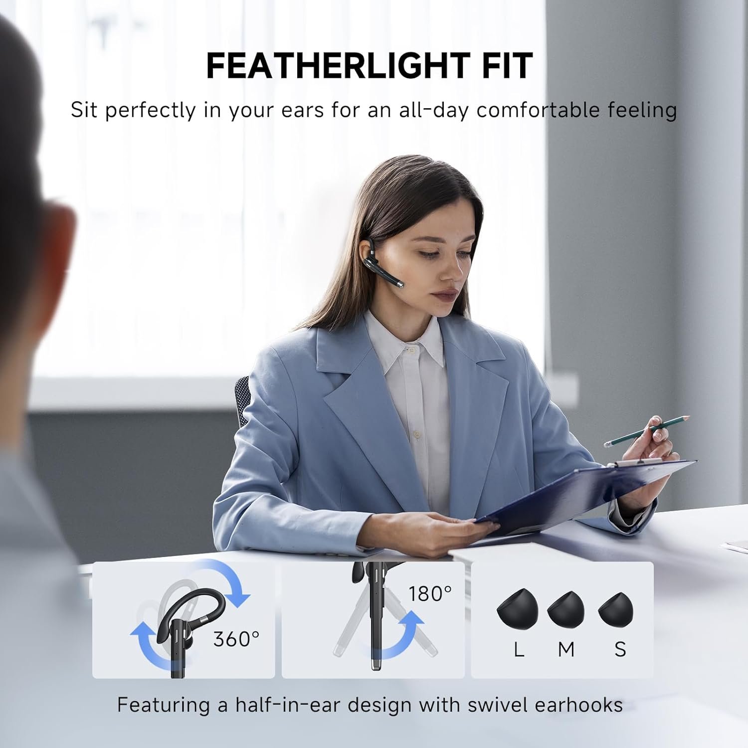 Bluetooth Headset Wireless Bluetooth 5.3, Bluetooth Earpiece 180 Hours Talktime Hands Free Headset with Mic for Cell Phone and Computer with Built-in Microphone for Work Trucker Office(Black)