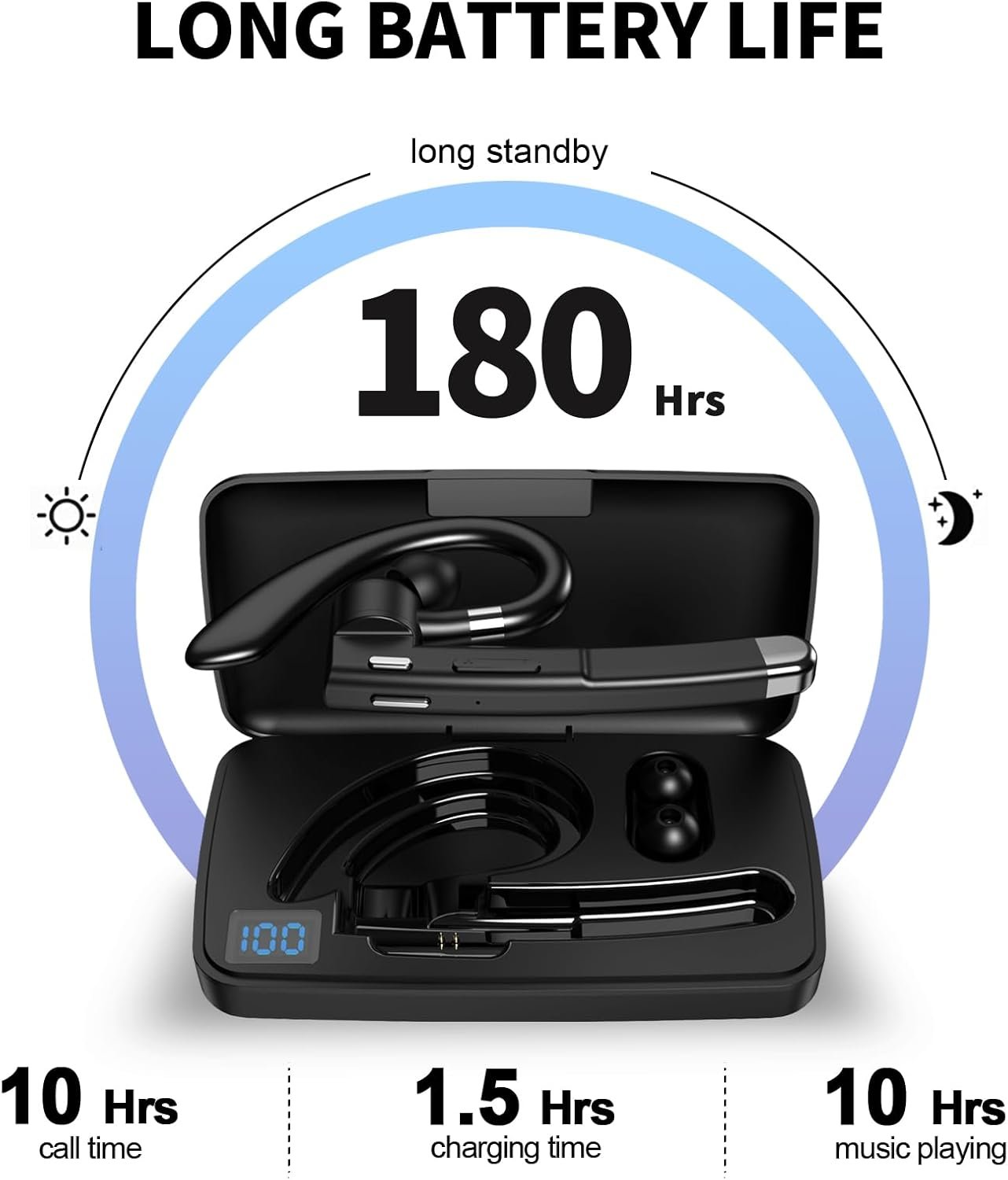 The Bluetooth headset is great for business and driving. The sound quality is clear, and the 80-hour talk time is very impressive. The charging case is compact and holds a good charge. I had an issue with the pairing process at first, but customer service was quick to assist and very polite. Overall, a reliable product backed by excellent support!